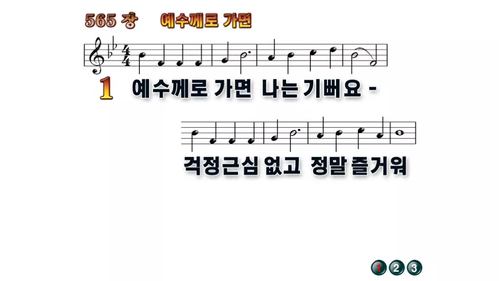 565장 - 예수께로 가면 찬송가의 배경없는 PPT 악보입니다.
