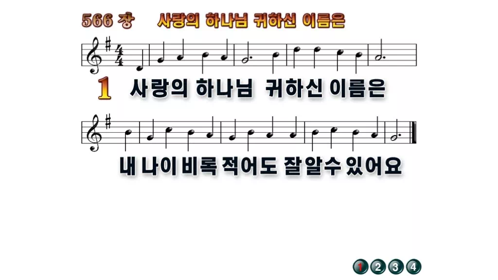 566장 - 사랑의 하나님 귀하신 이름은 찬송가의 배경없는 PPT 악보입니다.