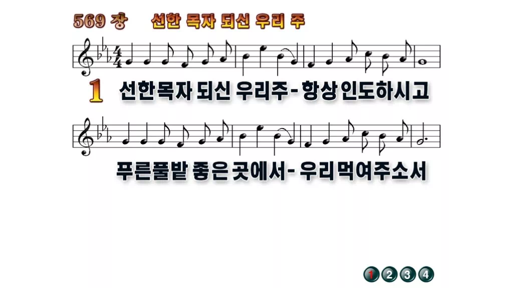 569장 - 선한 목자 되신 우리 주 찬송가의 배경없는 PPT 악보입니다.