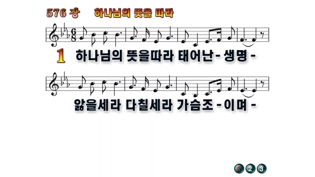 576장 - 하나님의 뜻을따라 찬송가의 배경없는 PPT 악보입니다.