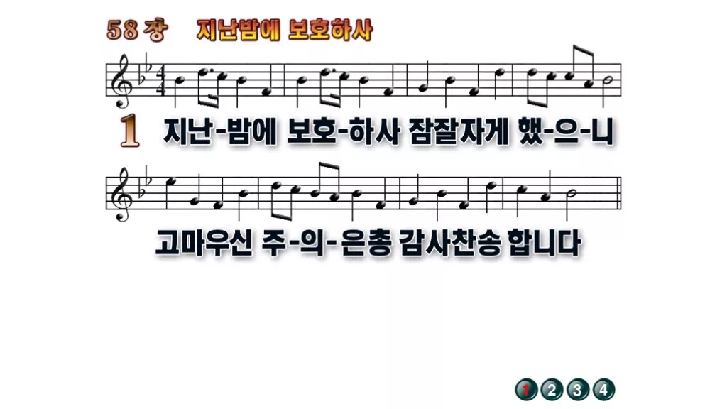 58장 - 지난밤에 보호하사 찬송가의 배경없는 PPT 악보입니다.
