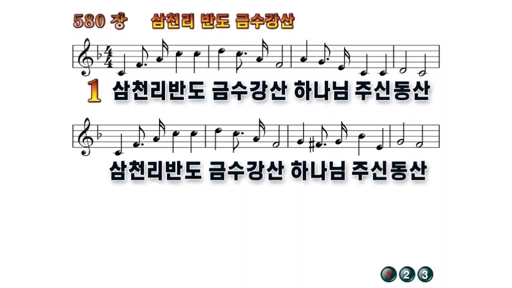 새찬송가_PPT] 580장 - 삼천리 반도 금수강산(와이드/16:9/무배경)