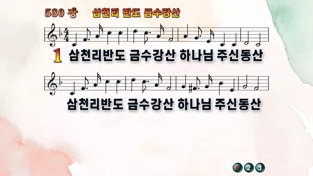 새찬송가_PPT] 580장 - 삼천리 반도 금수강산(와이드/16:9)
