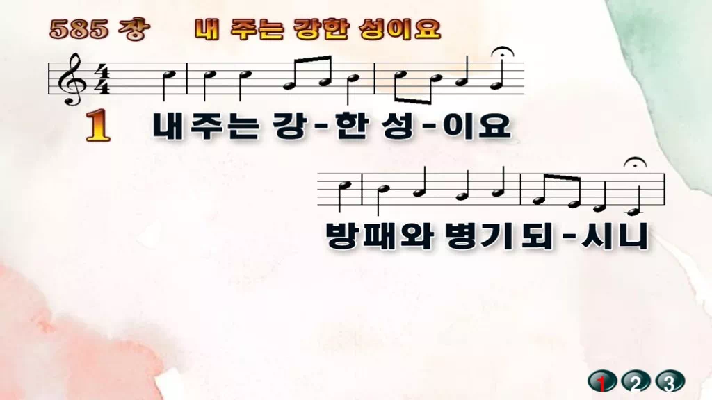 585장 - 내주는 강한 성이요 찬송가의 PPT 악보입니다.