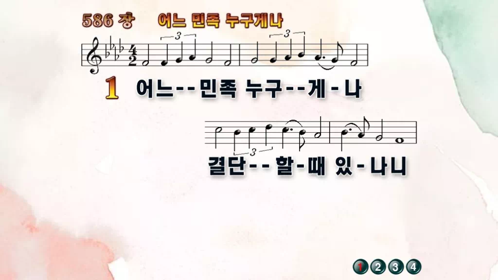 586장 - 어느 민족 누구게나 찬송가의 PPT 악보입니다.