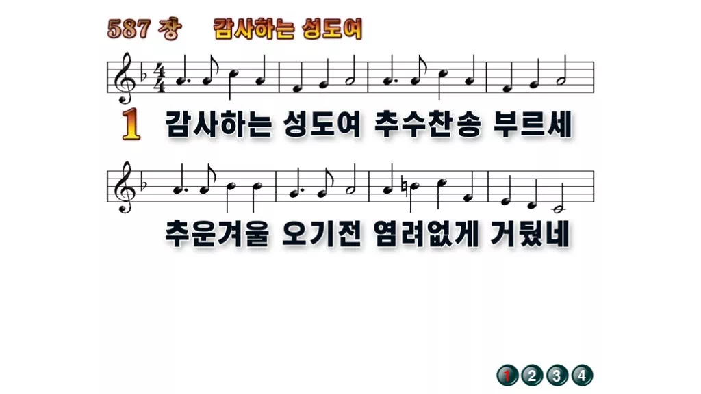 587장 - 감사하는 성도여 찬송가의 배경없는 PPT 악보입니다.