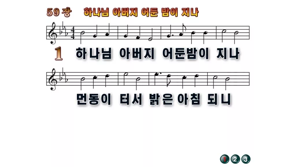 59장 - 하나님 아버지 어둔 밤이 지나 찬송가의 배경없는 PPT 악보입니다.