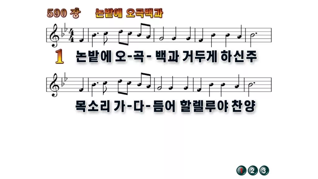 590장 - 논밭에 오곡백과 찬송가의 배경없는 PPT 악보입니다.