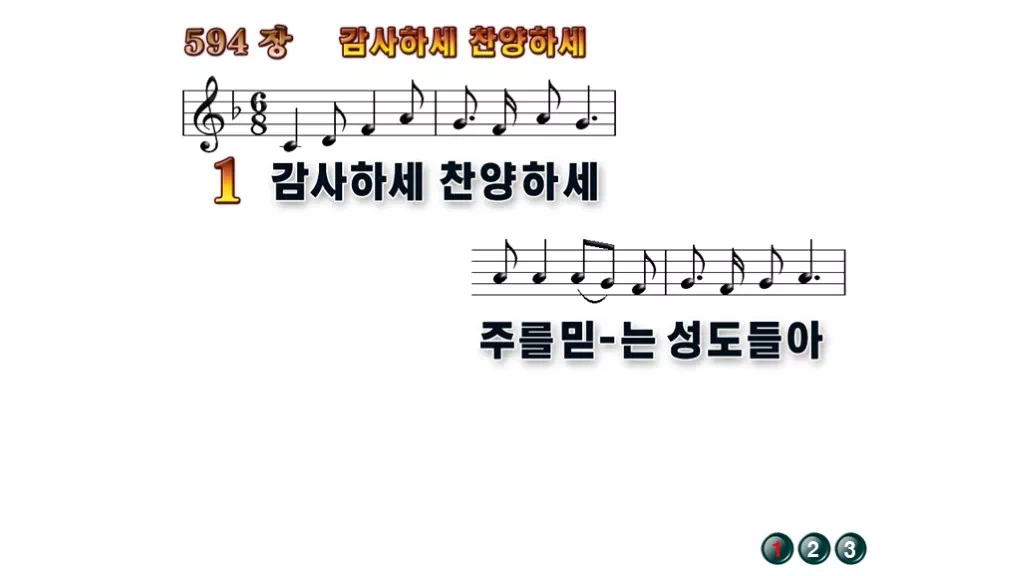 594장 - 감사하세 찬양하세 찬송가의 배경없는 PPT 악보입니다.