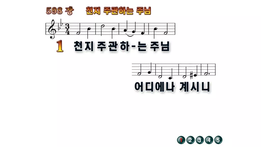 598장 - 천지 주관하는 주님 찬송가의 배경없는 PPT 악보입니다.