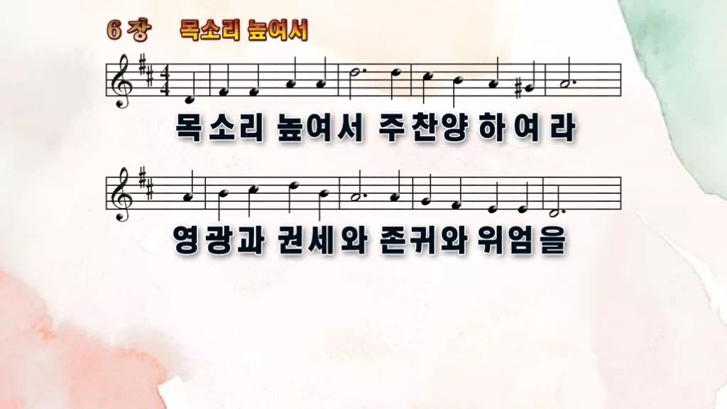 6장 - 목소리 높여서 찬송가의 PPT 악보입니다.