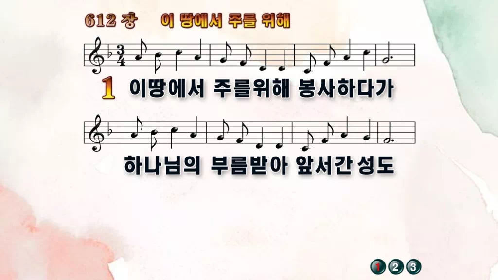 612장 - 이땅에서 주를 위해 찬송가의 PPT 악보입니다.