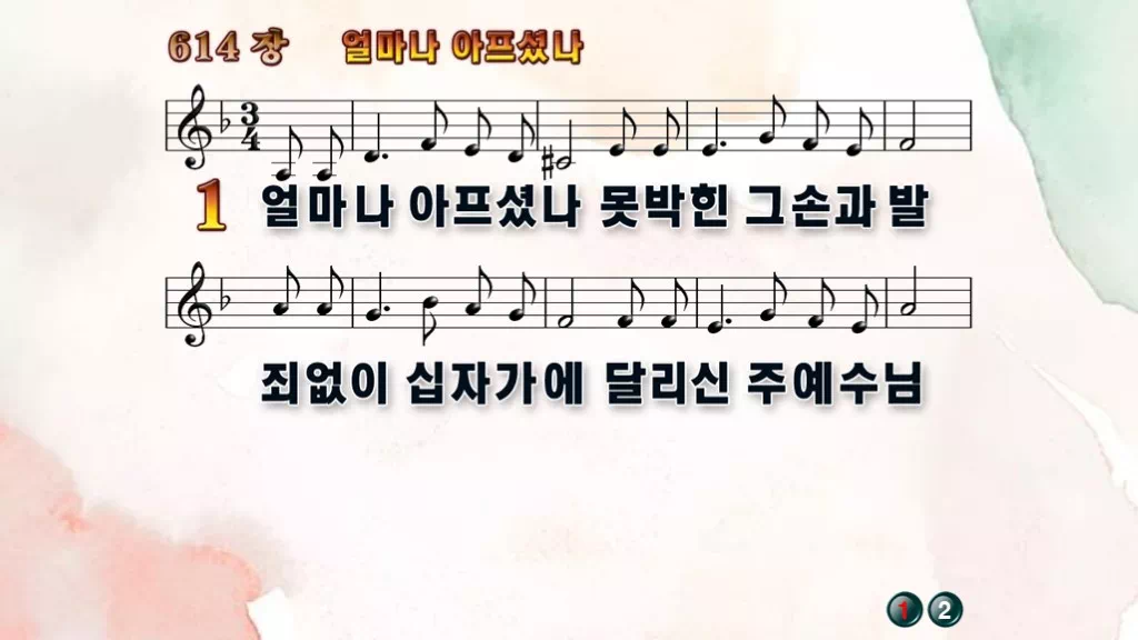 614장 - 얼마나 아프셨나 찬송가의 PPT 악보입니다.