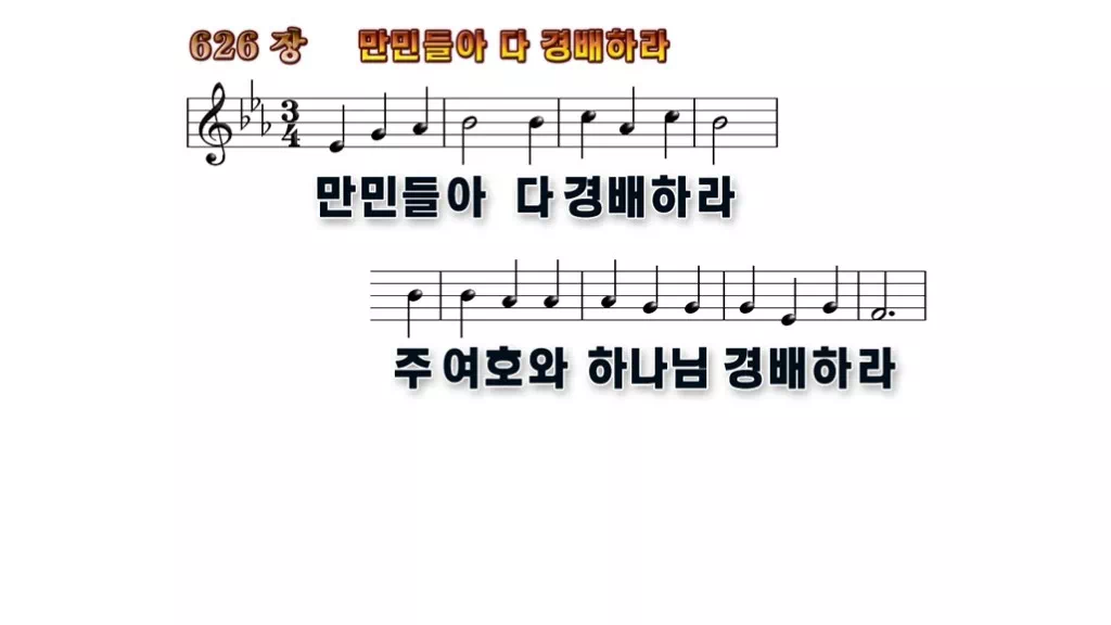 626장 - 만민들아 다 경배하라 찬송가의 배경없는 PPT 악보입니다.