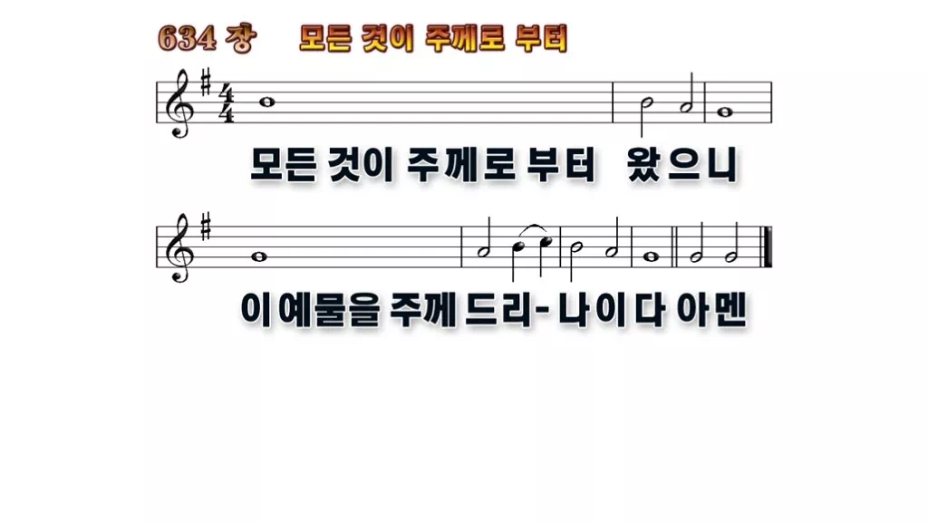 634장 - 모든것이 주께로 부터 찬송가의 배경없는 PPT 악보입니다.
