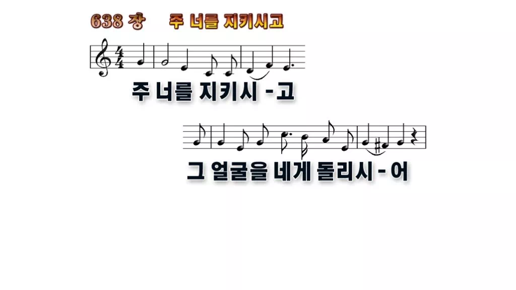638장 - 주 너를 지키시고 찬송가의 배경없는 PPT 악보입니다.