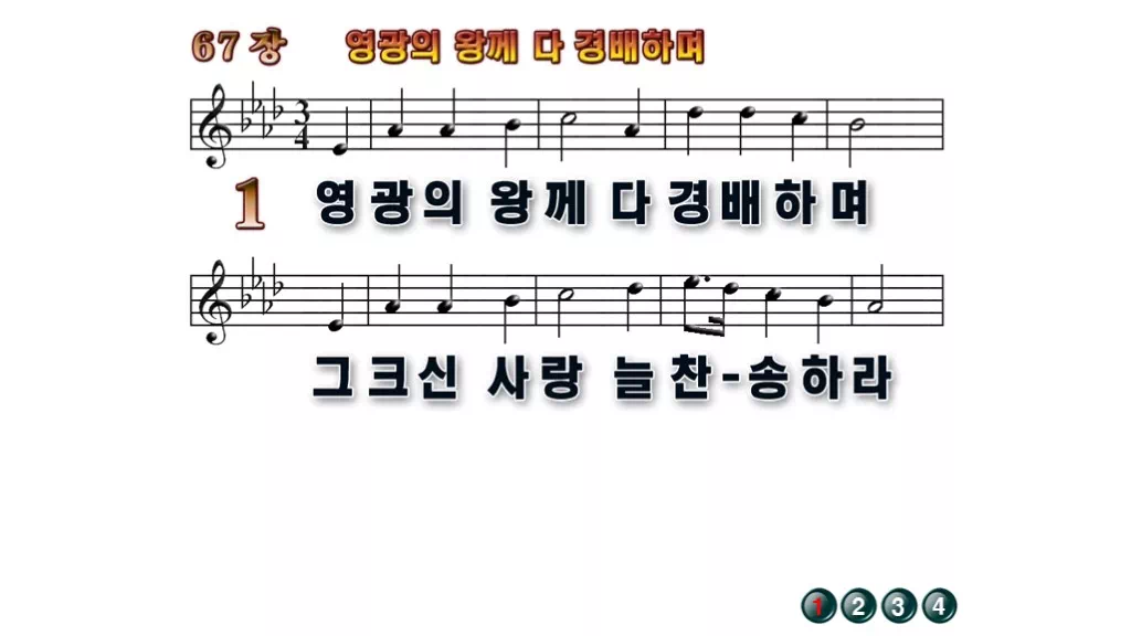 67장 - 영광의 왕께 다 경배하며 찬송가의 배경없는 PPT 악보입니다.