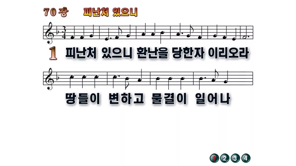 70장 - 피난처 있으니 찬송가의 배경없는 PPT 악보입니다.