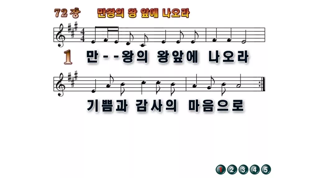 72장 - 만왕의 왕 앞에 나오라 찬송가의 배경없는 PPT 악보입니다.