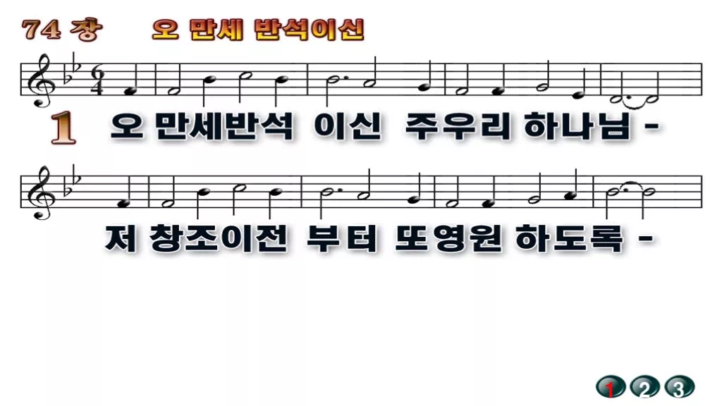 74장 - 오 만세 반석이신 찬송가의 배경없는 PPT 악보입니다.