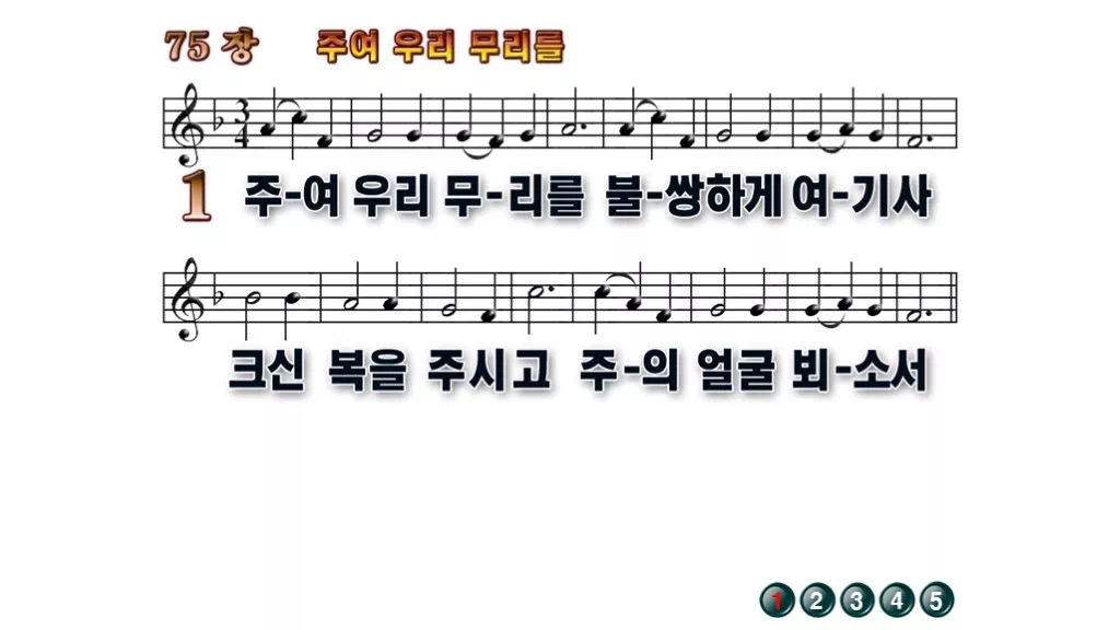 75장 - 주여 우리 무리를 찬송가의 배경없는 PPT 악보입니다.