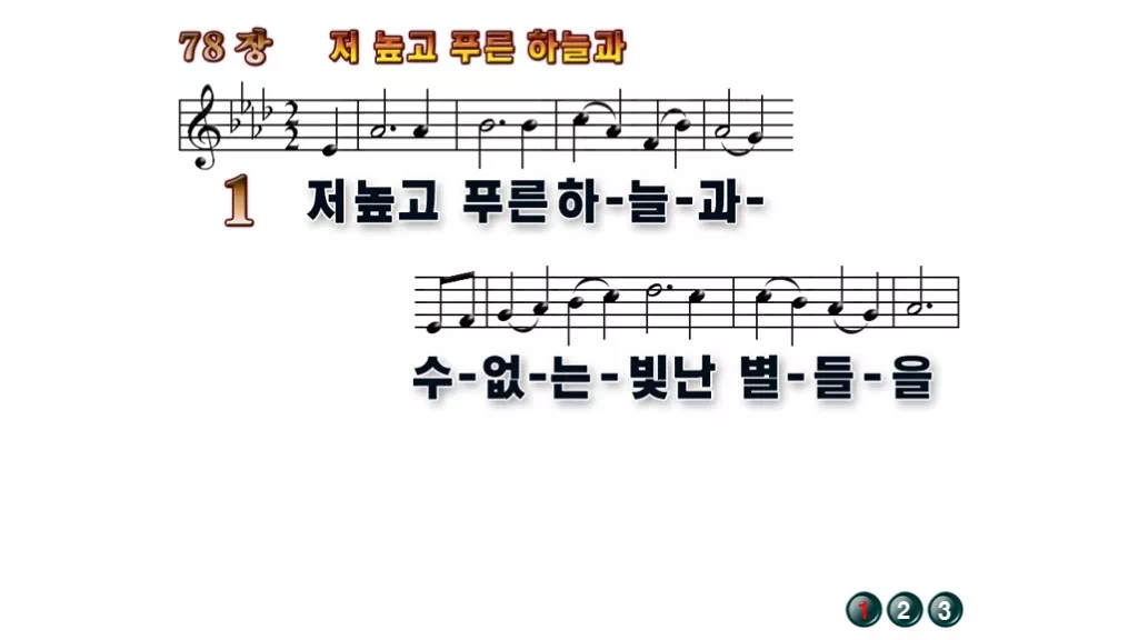 78장 - 저 높고 푸른 하늘과 찬송가의 배경없는 PPT 악보입니다.