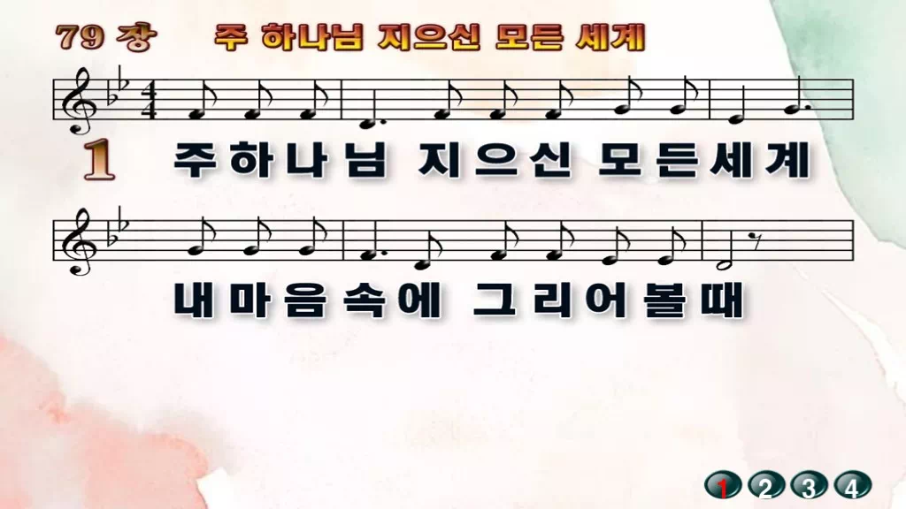79장 - 주 하나님 지으신 모든 세계 찬송가의 PPT 악보입니다.