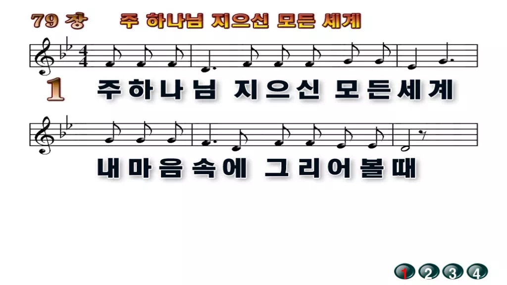 79장 - 주 하나님 지으신 모든 세계 찬송가의 배경없는 PPT 악보입니다.