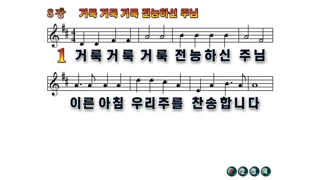 8장 - 거룩 거룩 거룩 전능하신 주님 찬송가의 배경없는 PPT 악보입니다.