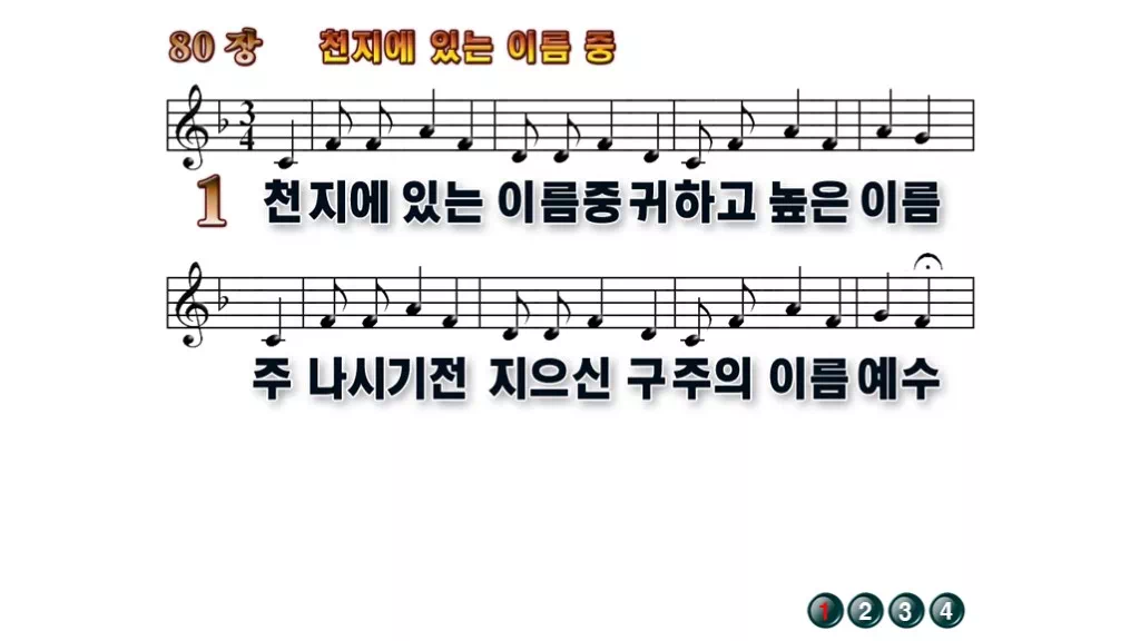 80장 - 천지에 있는 이름 중 찬송가의 배경없는 PPT 악보입니다.
