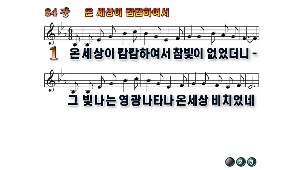 84장 - 온 세상이 캄캄하여서 찬송가의 배경없는 PPT 악보입니다.