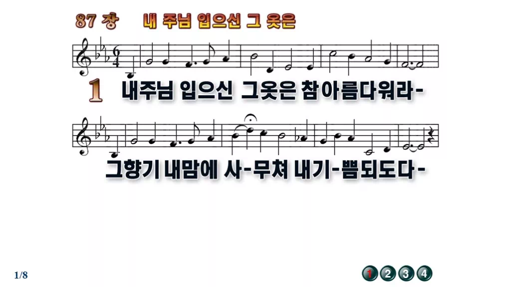 87장 - 내 주님 입으신 그 옷은 찬송가의 배경없는 PPT 악보입니다.