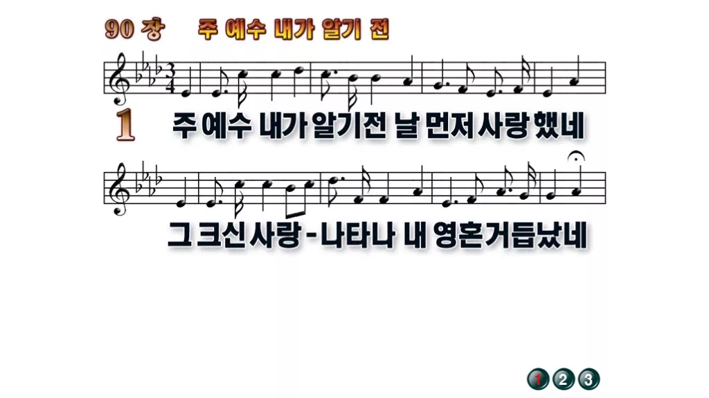 90장 - 주 예수 내가 알기 전 찬송가의 배경없는 PPT 악보입니다.