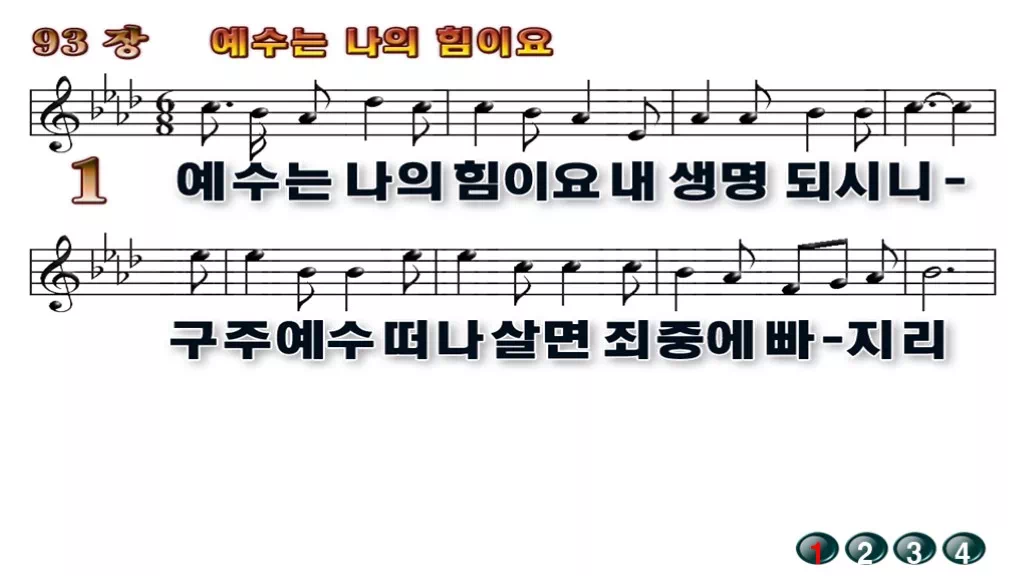 93장 - 예수는 나의 힘이요 찬송가의 배경없는 PPT 악보입니다.