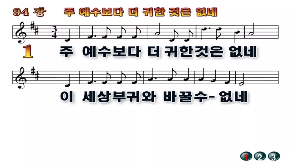 94장 - 주 예수보다 더 귀한 것은 없네 찬송가의 배경없는 PPT 악보입니다.