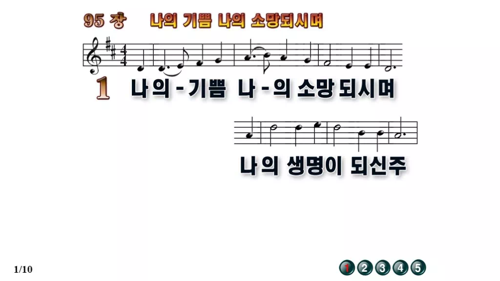 95장 - 나의 기쁨 나의 소망 되시며 찬송가의 배경없는 PPT 악보입니다.