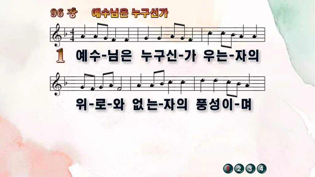 96장 - 예수님은 누구신가 찬송가의 PPT 악보입니다.