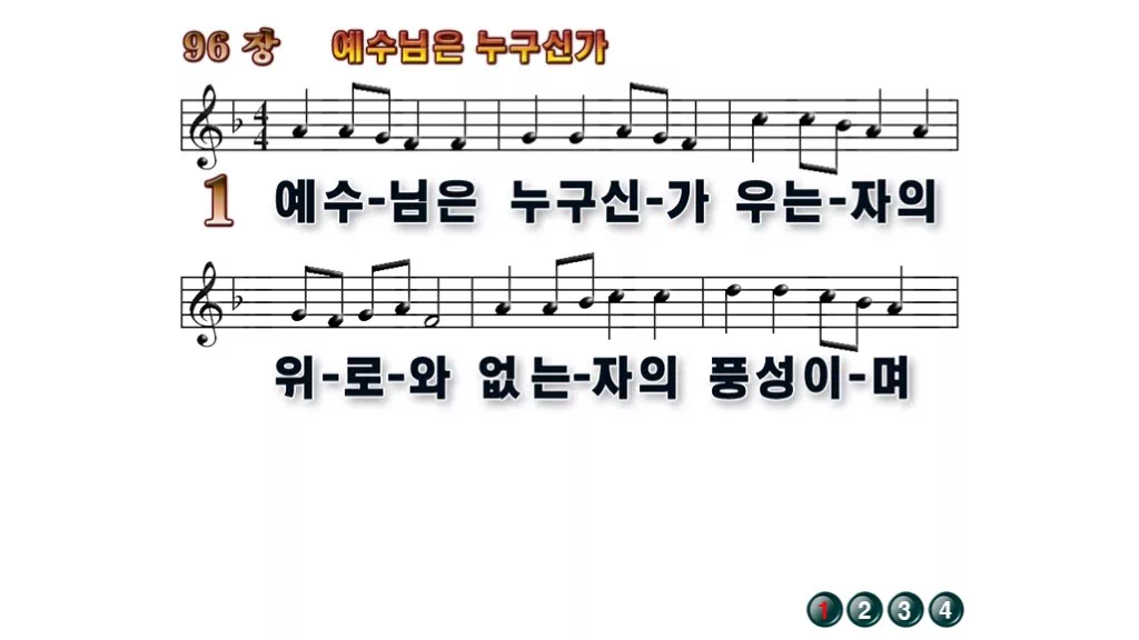 96장 - 예수님은 누구신가 찬송가의 배경없는 PPT 악보입니다.