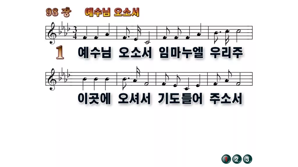 98장 - 예수님 오소서 찬송가의 배경없는 PPT 악보입니다.